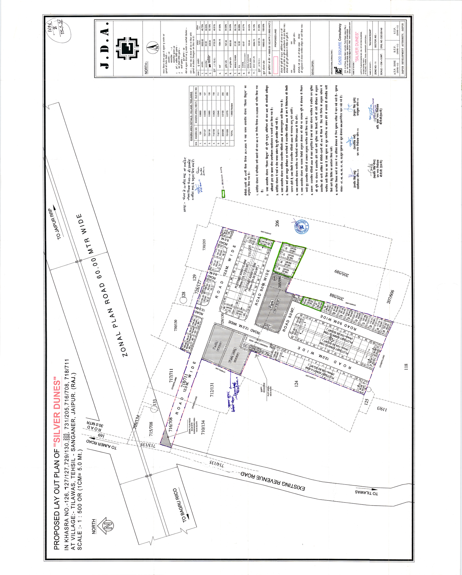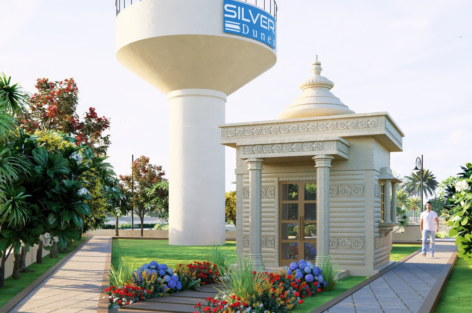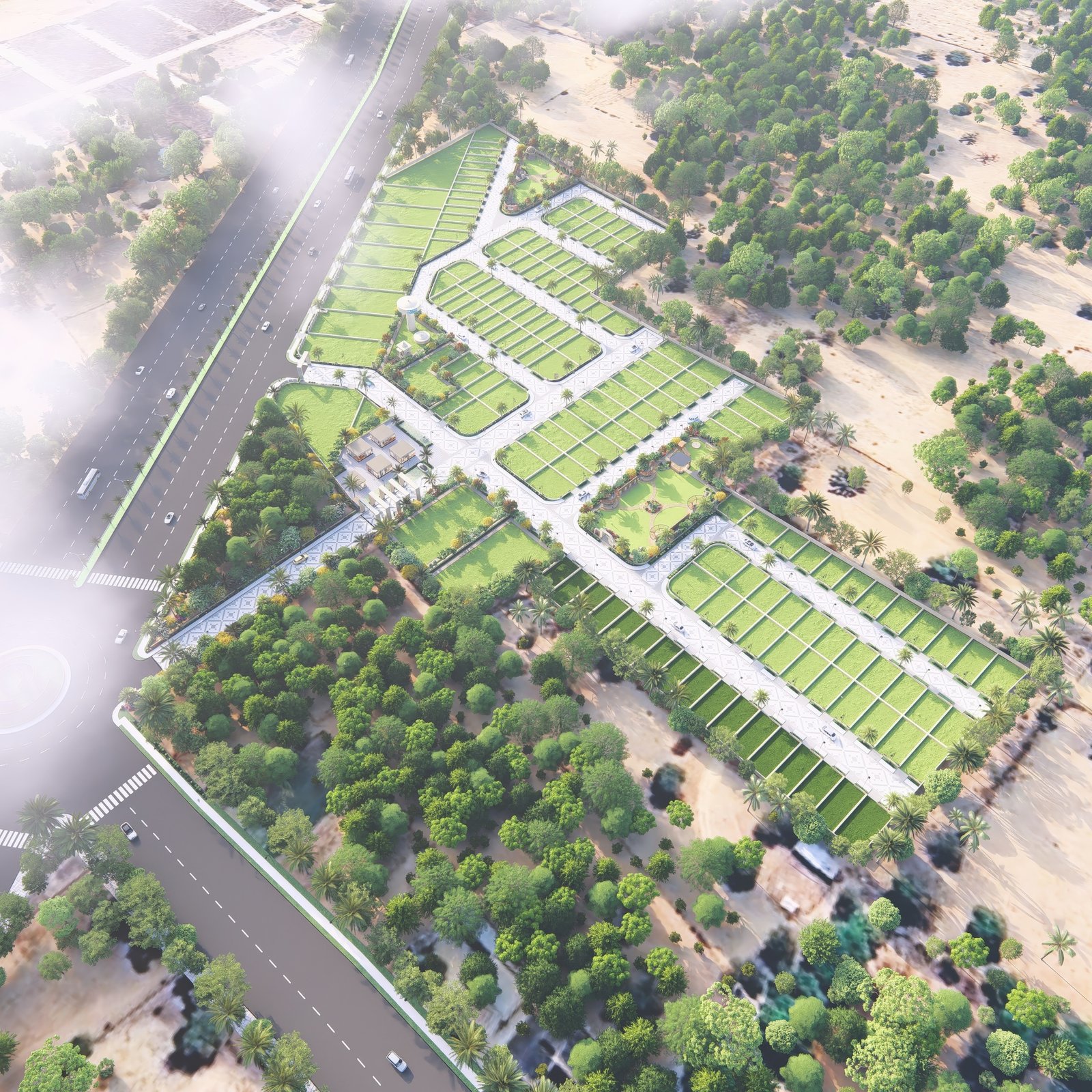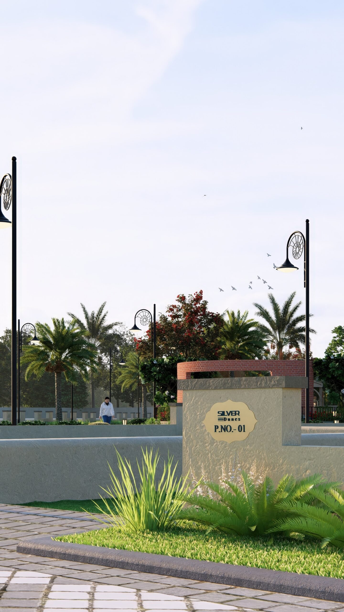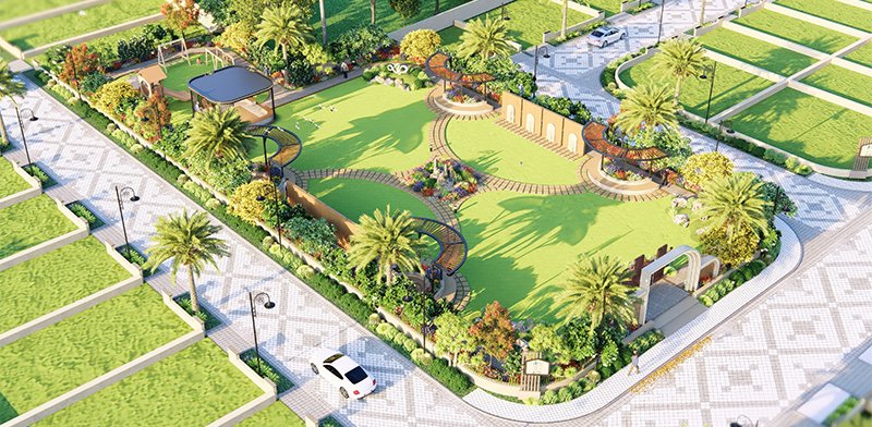 The master layout of Silver Dunes integrates structured residential blocks, internal road networks, commercial pockets, green zones, and public utility planning into a cohesive township design. Pedestrian movement is clearly mapped, open areas are evenly distributed, and infrastructure is routed efficiently to support long term functionality. Defined entry points and organised circulation ensure clarity and accessibility throughout the township.