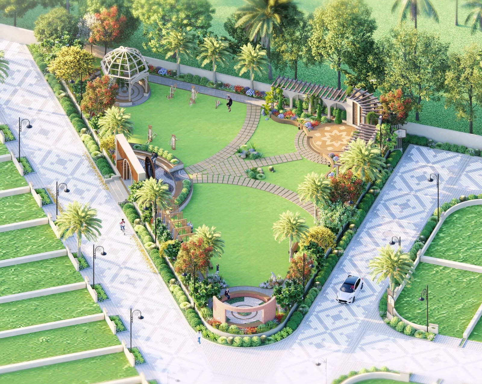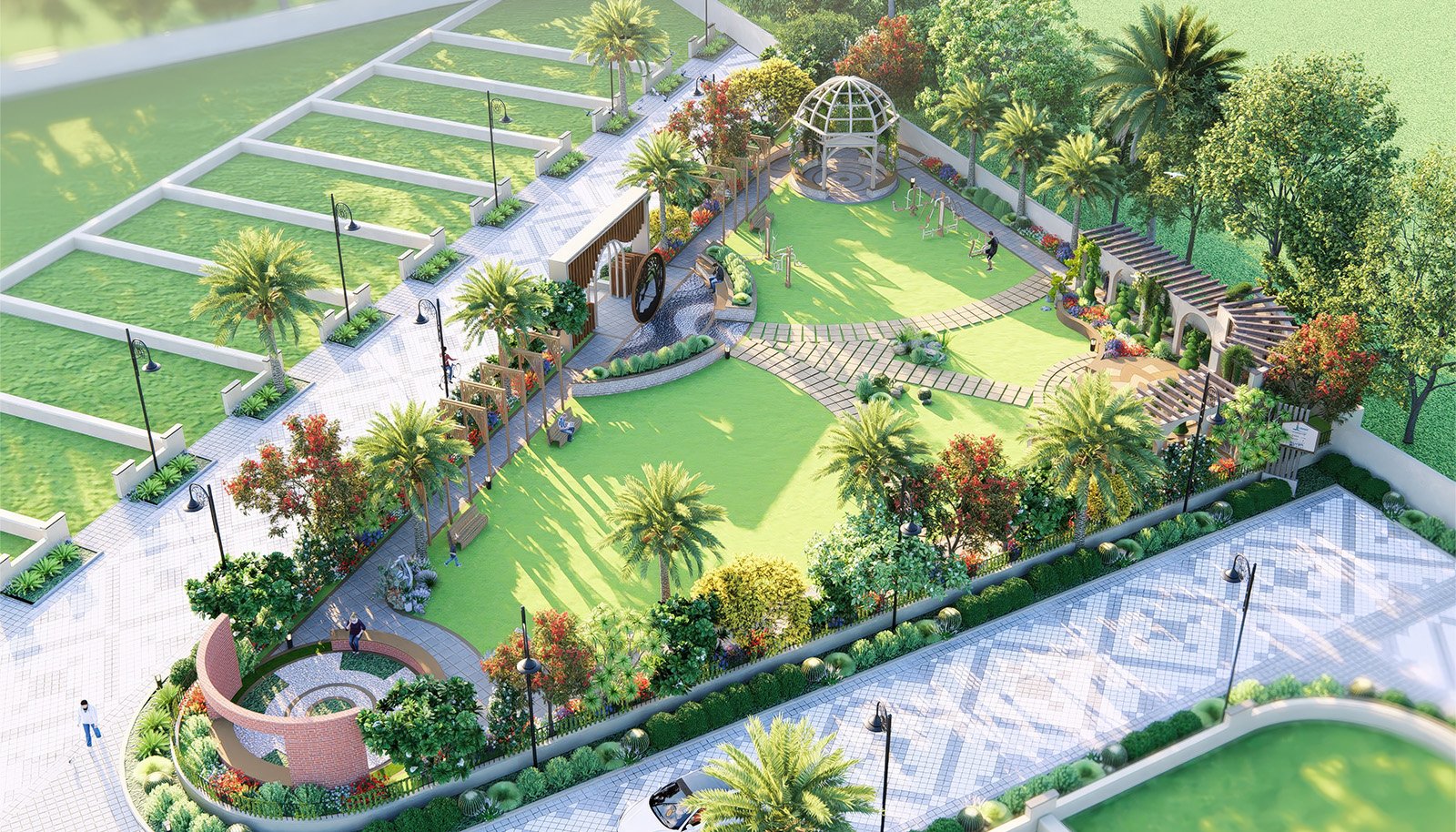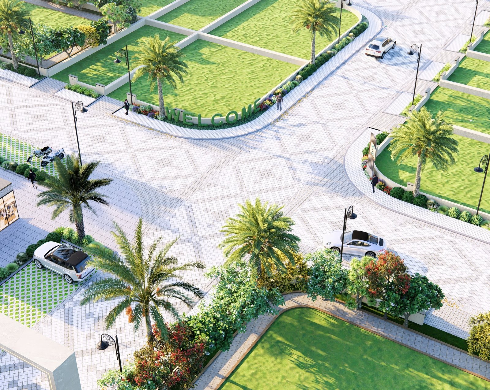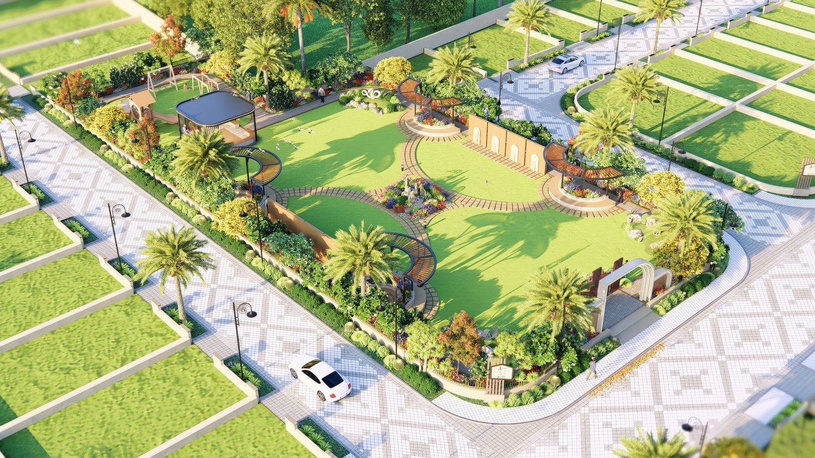 The master layout of Silver Dunes integrates structured residential blocks, internal road networks, commercial pockets, green zones, and public utility planning into a cohesive township design. Pedestrian movement is clearly mapped, open areas are evenly distributed, and infrastructure is routed efficiently to support long term functionality. Defined entry points and organised circulation ensure clarity and accessibility throughout the township.